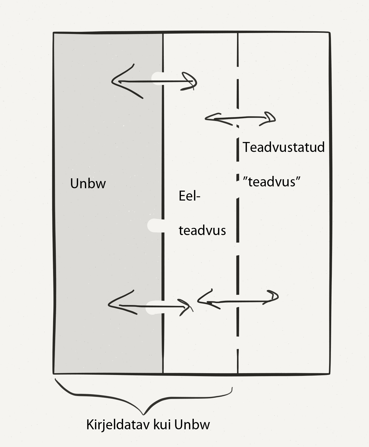 Joonis 2 Päris Unbw ja eelteadvuse ning teadliku teadvuse vahel toimub pidev liikumine, neid eristavad aga mõttelised barjäärid osat infot ei luba teise sfääri edasi liikuda